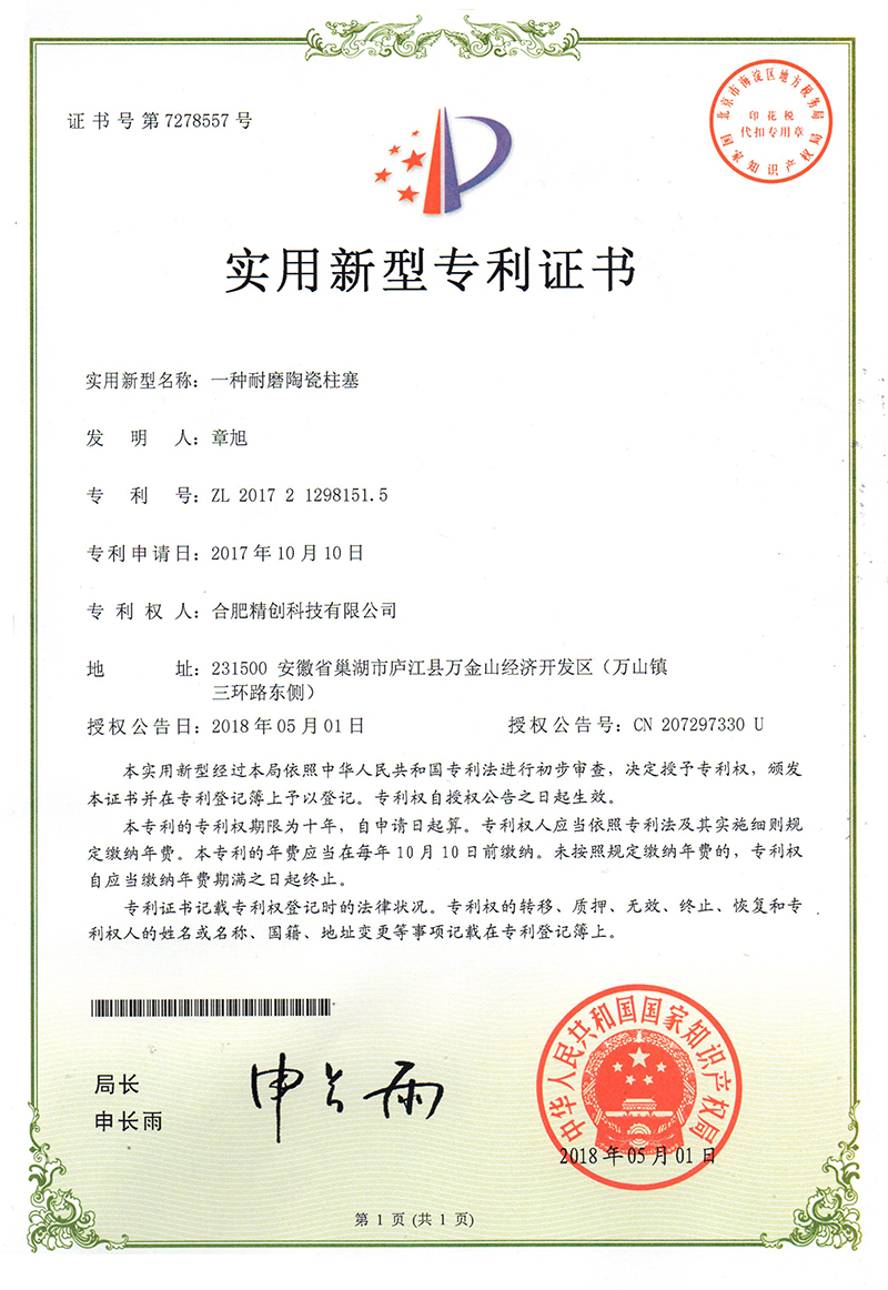 (2017實用新型)一種高密封性的陶瓷柱塞